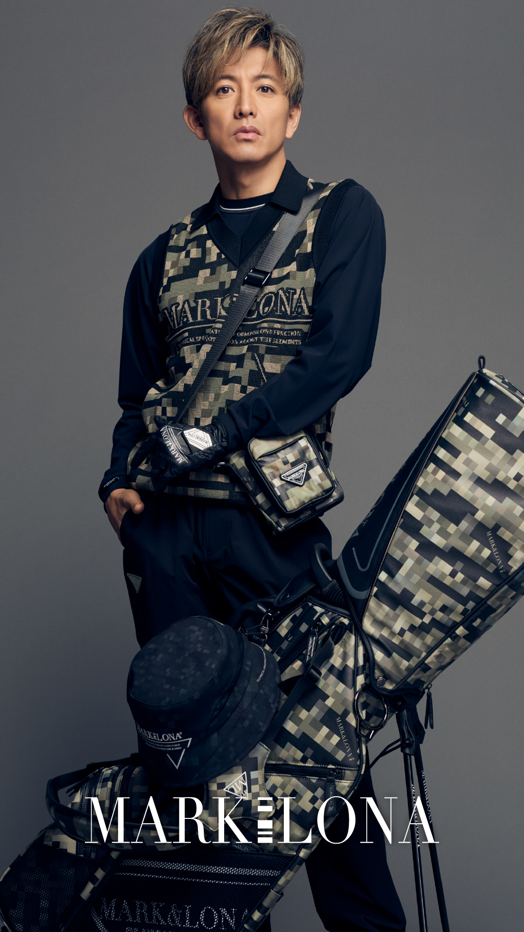 アクセサリー類もデジタルカモフラージュ柄で統一。キャディバッグ(9型47インチ対応)は、フルセット収納可能ながらコンパクトなスタンド型。マグネット式ポケットやダブルショルダーを採用し、実用性とスタイルを両立しました。
